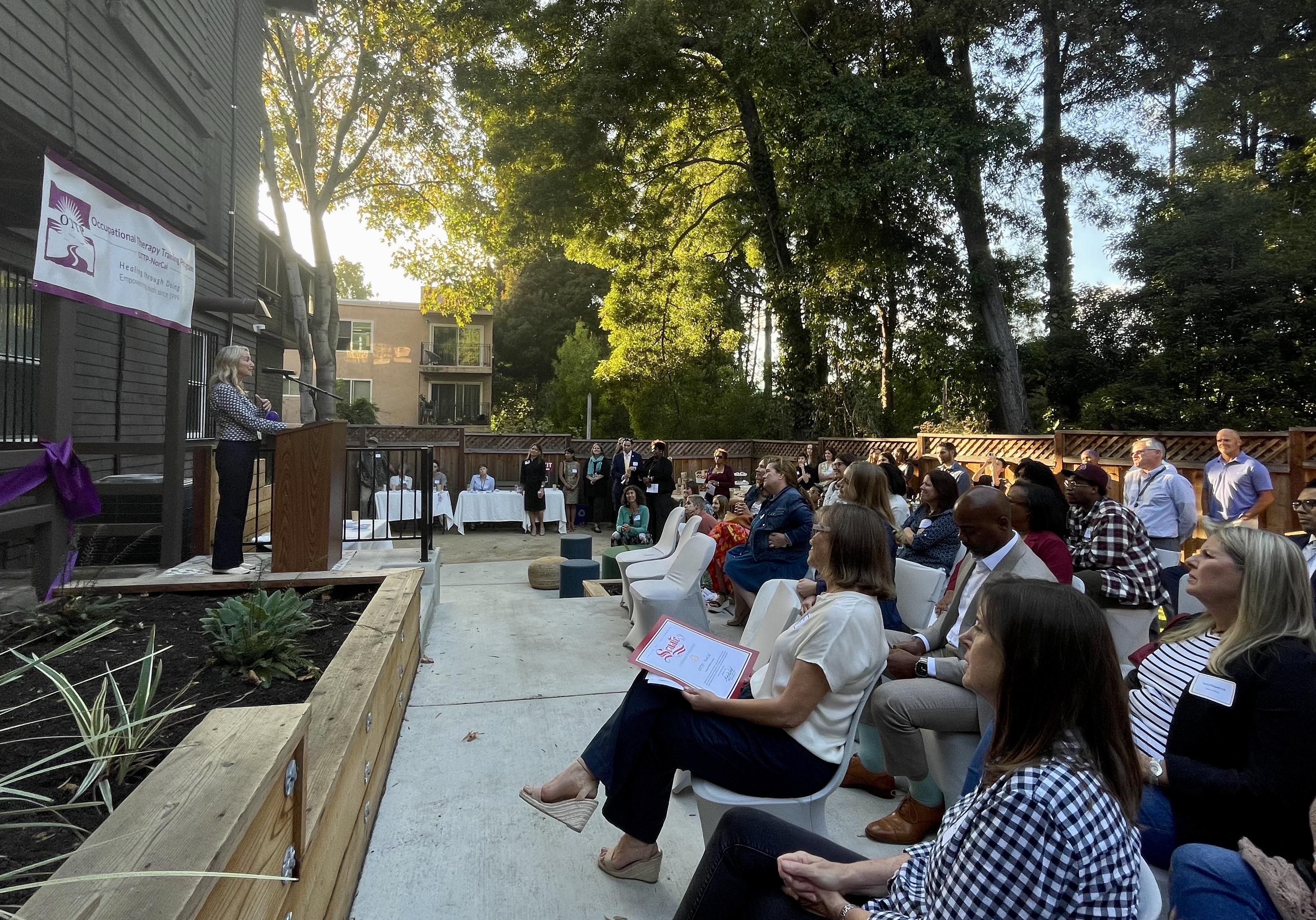 The ribbon cutting ceremony featured light refreshments, a tour of the building, and presentations from key leaders. Attendees also had the opportunity to hear directly from OTTP therapists about the programs offered throughout the East Bay, illustrating the impact of our services in the community.